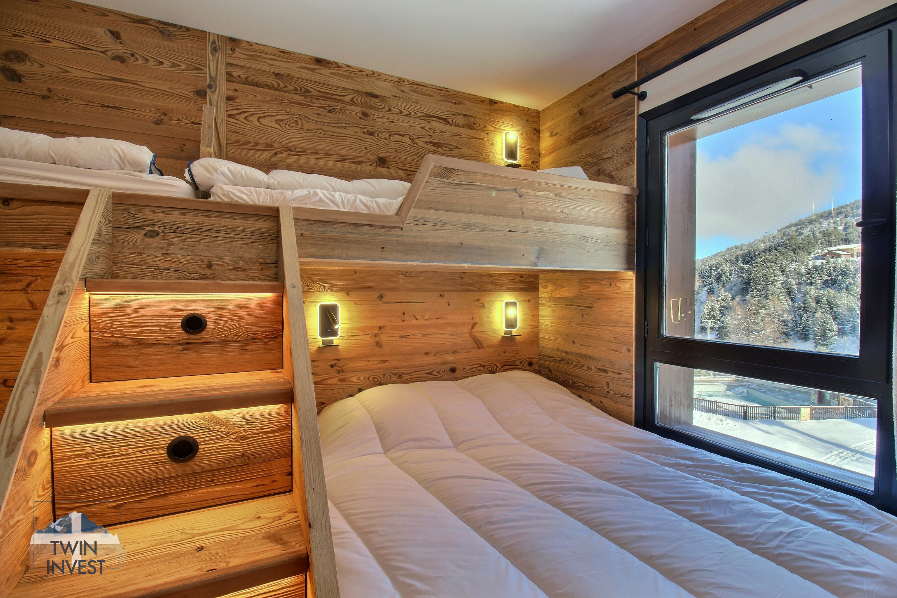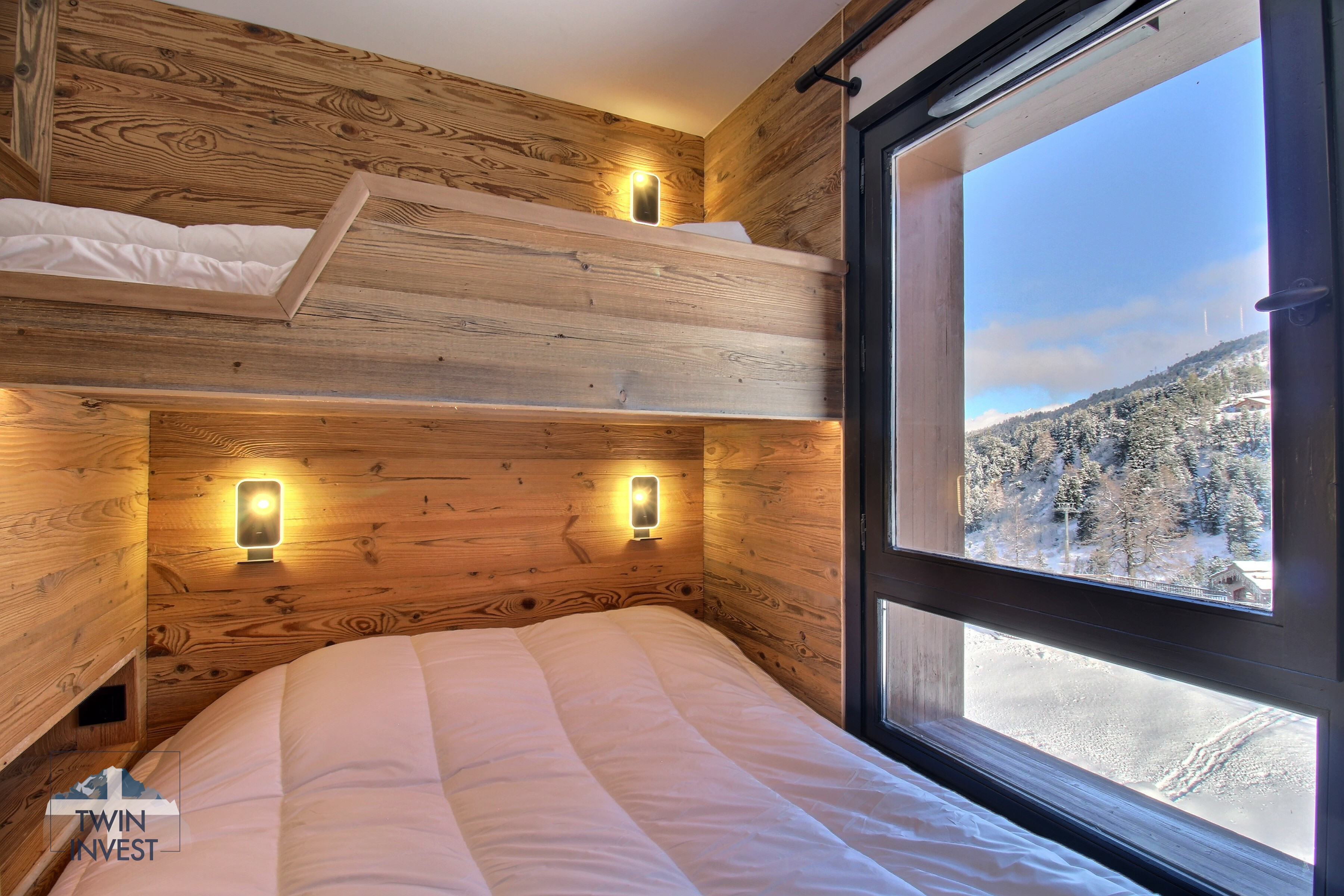 Situé au 2nd étage de la Résidence 5* Sources de Marie, dans le village des Arcs 1950, l'appartement propose une exposition Est avec vue panoramique sur le Mont-Blanc.