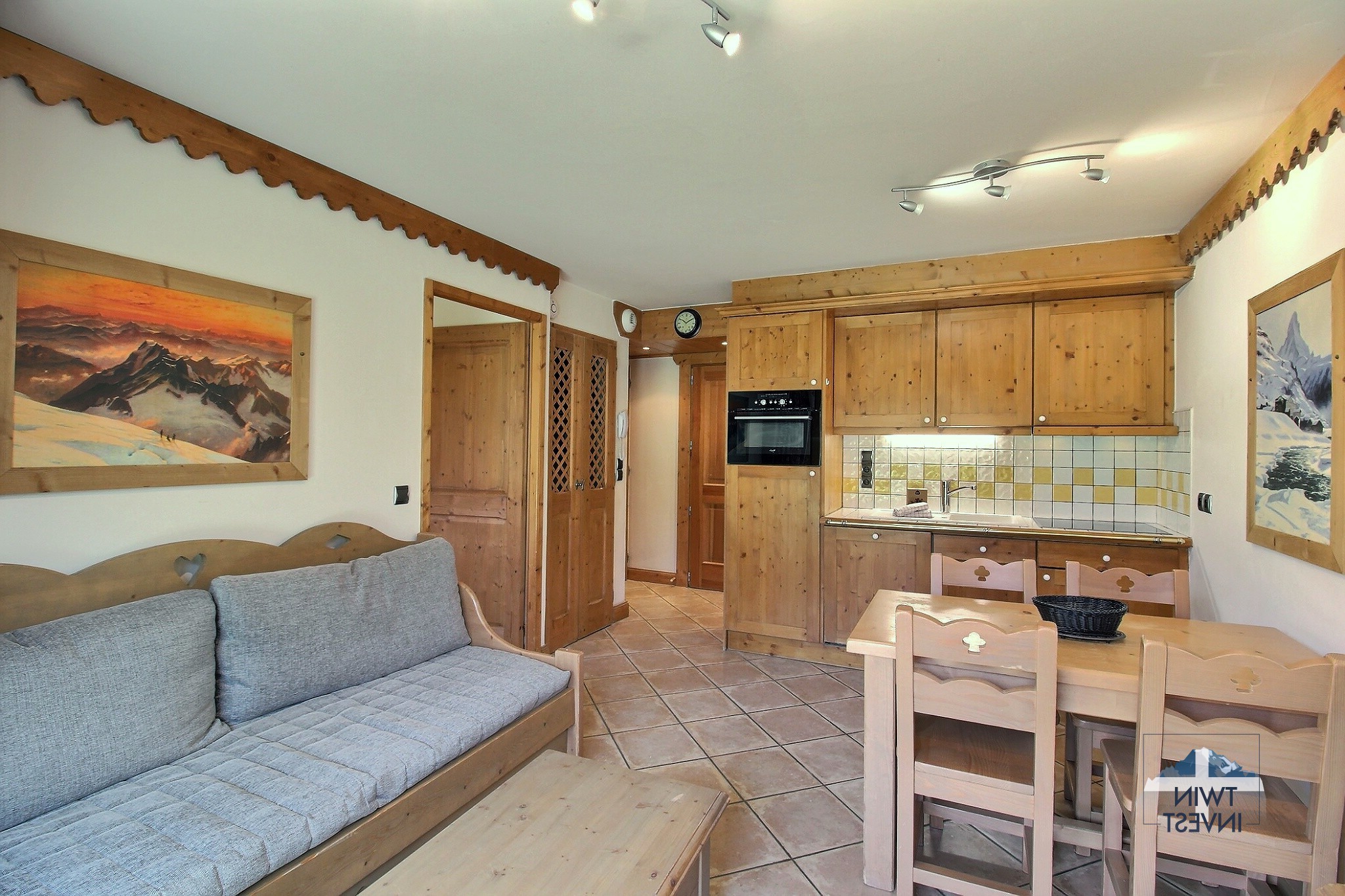 Très bel appartement 2 pièces, vendu meublé, cuisine entièrement équipée. Mobilier neuf - Place de parking souterraine - Casier à ski - Piscine, sauna, hammam, jacuzzi.