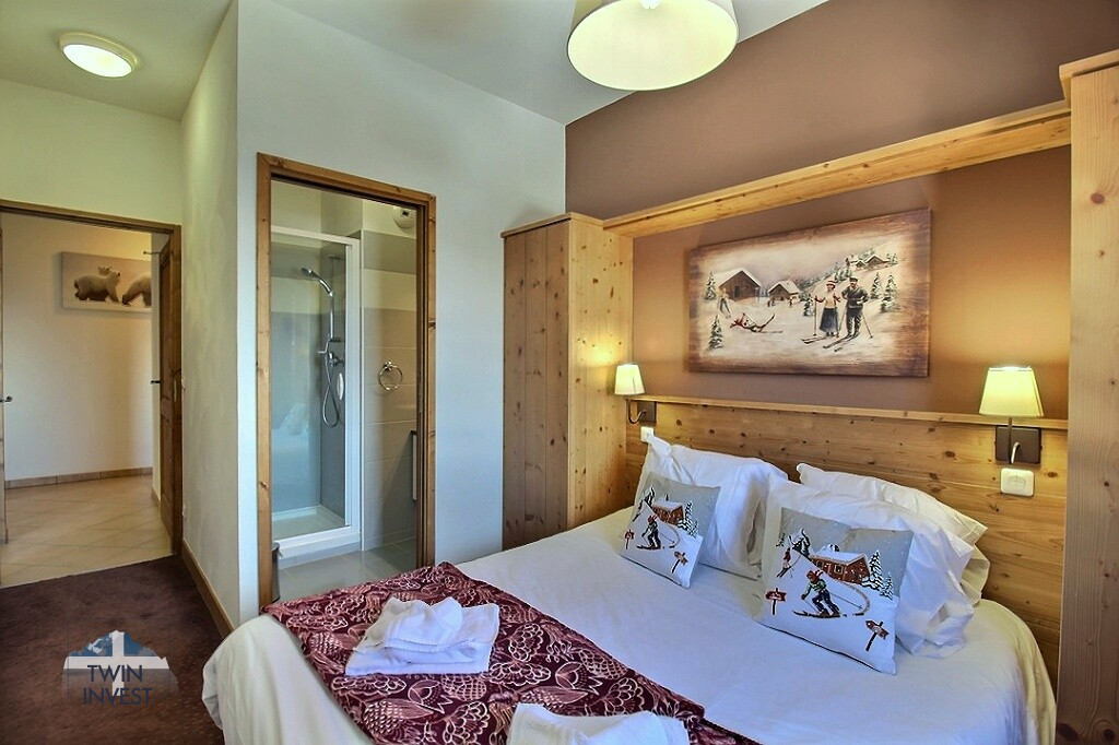 - D’une cuisine équipée, ouverte sur un salon lumineux avec un canapé convertible et accès à une large terrasse de privative de 19m2, offrant une exposition Ouest et une vue panoramique sur la vallée de la Haute-Tarentaise.